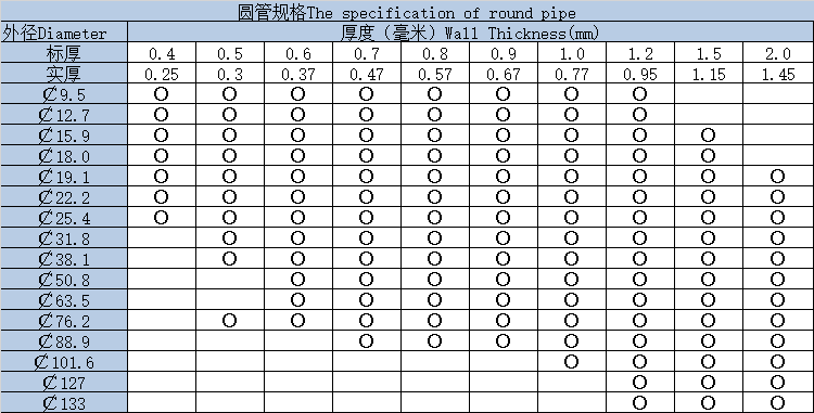 产品圆管规格